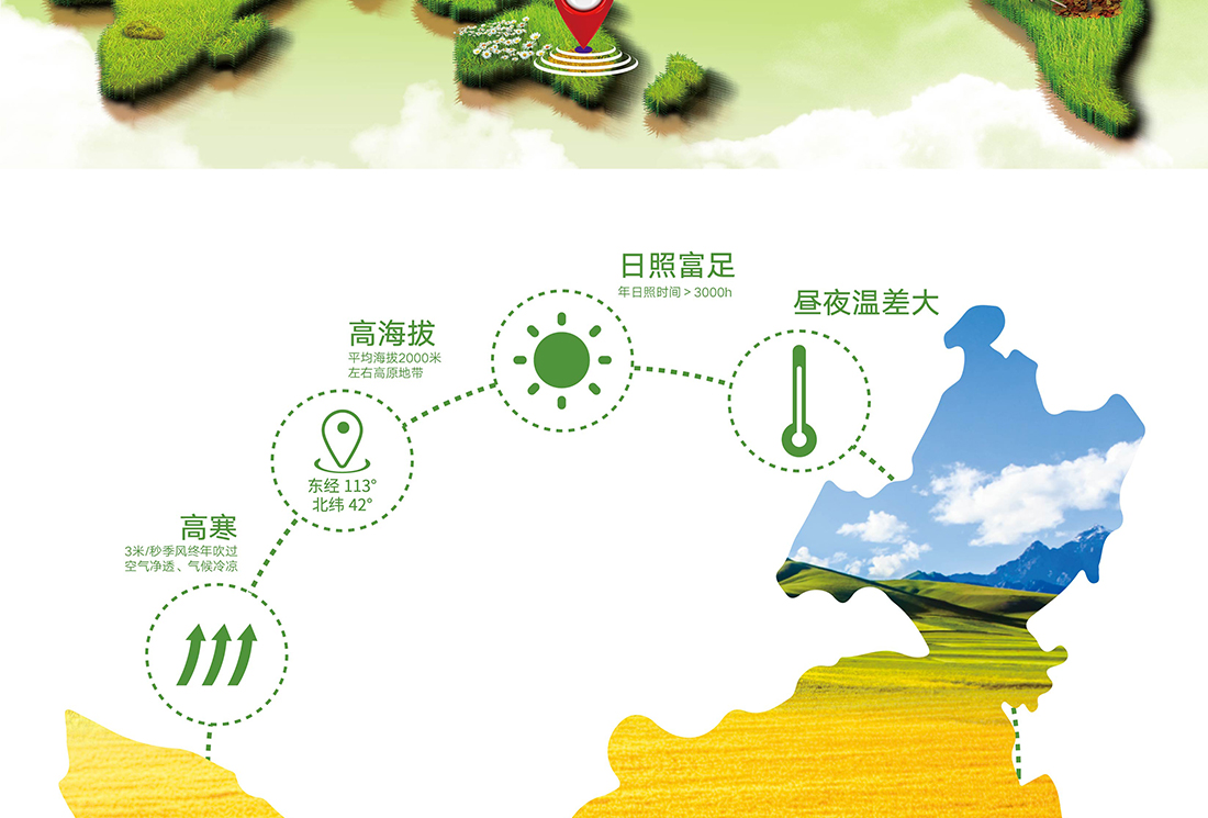 內(nèi)蒙古,世界裸燕麥起源地之一;陰山源生燕麥在此初生滿足生長規(guī)律一切所需,高寒、高海拔、日照充足;遵循自然法則,靠天滋養(yǎng),自然生長;