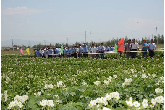 來賓參觀國(guó)家馬鈴薯種植大土城農(nóng)場(chǎng)標(biāo)準(zhǔn)化種植區(qū)