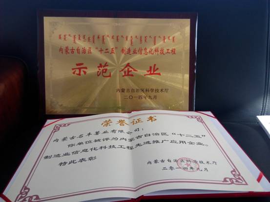 2014年11月21日,信息中心參加了內(nèi)蒙古自治區(qū)“十二五”制造業(yè)信息化科技工程推進(jìn)會(huì),會(huì)上,烏蘭察布市科技局宣布并為我公司頒發(fā)了由內(nèi)蒙古科技廳評(píng)選的“內(nèi)蒙古自治區(qū)“十二五”制造業(yè)信息化科技工程示范企業(yè)”牌匾和“制造業(yè)信息化科技工程先進(jìn)推廣應(yīng)用企業(yè)”榮譽(yù)證書(shū)。 此 次為第二批自治區(qū)“十二五”制造業(yè)信息化科技工程示范企業(yè)和全區(qū)制造業(yè)信息化科技工程先進(jìn)推廣應(yīng)用的評(píng)選,經(jīng)各盟市和包頭稀土高新區(qū)科技管理部門(mén)推薦、專(zhuān) 家網(wǎng)評(píng)打分和專(zhuān)家討論評(píng)審,全區(qū)共272家被評(píng)選上榜,其中烏蘭察布市示范企業(yè)和先進(jìn)推廣應(yīng)用企業(yè)共四家,我公司被評(píng)選上榜并榮獲表彰。 此次表彰及“制造業(yè)信息化科技工程示范企業(yè)”的揭牌,是對(duì)民豐薯業(yè)近年來(lái)信息工作所取得成果的充分肯定。同時(shí),對(duì)于公司未來(lái)信息化發(fā)展必將起到極大的推動(dòng)作用。