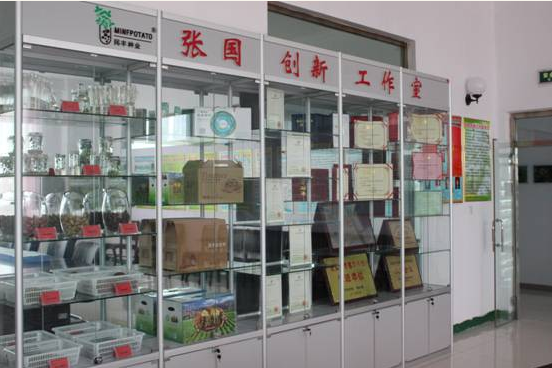 創(chuàng)新工作室建立在馬鈴薯研究院,以自治區(qū)勞動模范總經(jīng)理張國命名。工作室設(shè)立了成果展示柜,集中展示了工作室成立以來總經(jīng)理張國和我公司在馬鈴薯領(lǐng)域科研發(fā)展領(lǐng)域方面取得的創(chuàng)新成果和獲得的榮譽。工作室組織機(jī)構(gòu)、工作計劃、目標(biāo)、內(nèi)容、簡介、科研課題項目管理制度、管理辦法全部上墻,分別掛牌成立了實驗準(zhǔn)備室、病理鑒定室、理化分析室、育種資源室和脫毒培養(yǎng)室。
