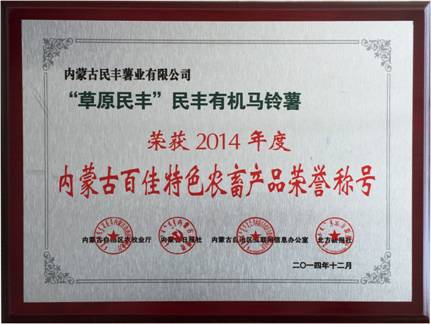 此次評選活動自北方新報、正北方網(wǎng)、《北方新報》官方微信公布推選產(chǎn)品以來,來自全區(qū)各地11.2萬人次的消費者對112家企業(yè)的539種推選產(chǎn)品進行了投票。最終,經(jīng)過自治區(qū)農(nóng)牧業(yè)廳、內(nèi)蒙古食品藥品監(jiān)督管理局、內(nèi)蒙古龍頭企業(yè)協(xié)會的專家結(jié)合企業(yè)報名材料、企業(yè)年檢記錄、產(chǎn)品檢驗報告及消費者投票等多項內(nèi)容,推選出了120種內(nèi)蒙古百佳特色農(nóng)畜產(chǎn)品名單。我公司“草原民豐”有機馬鈴薯榮獲2014年度內(nèi)蒙古百佳特色農(nóng)畜產(chǎn)品榮譽稱號。